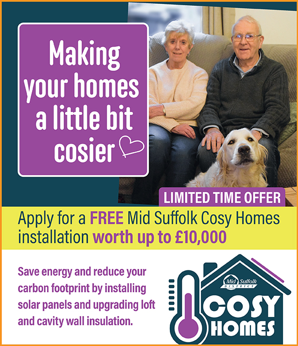 The Mid Suffolk Cosy Homes initiative has been designed to help households make long‑term energy efficiency improvements to their properties. The grant funding is available to Mid Suffolk homeowners, private tenants and landlords (with fewer than five properties in the district).